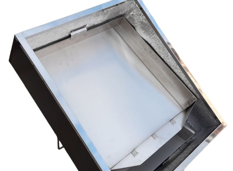 El fundidor está hecho de material exterior resistente a la intemperie de 12 mm de grosor. La tapa superior irrompible está fabricada con una placa multicapa de policarbonato, bajo la cual pueden alcanzarse temperaturas de hasta 120 °C al sol. La tapa está fijada al fundidor con abrazaderas en ambos lados. Para facilitar su transporte, incorpora un asa robusta en uno de los laterales.