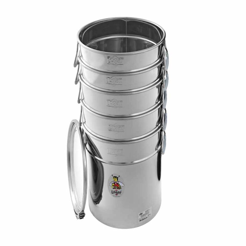 Indicado para: almacenamiento de miel y productos aptos para consumo hasta un máximo de 25 kg. Dimensiones interiores: arriba Ø 307 mm, abajo Ø 293 mm; altura 28 cm.