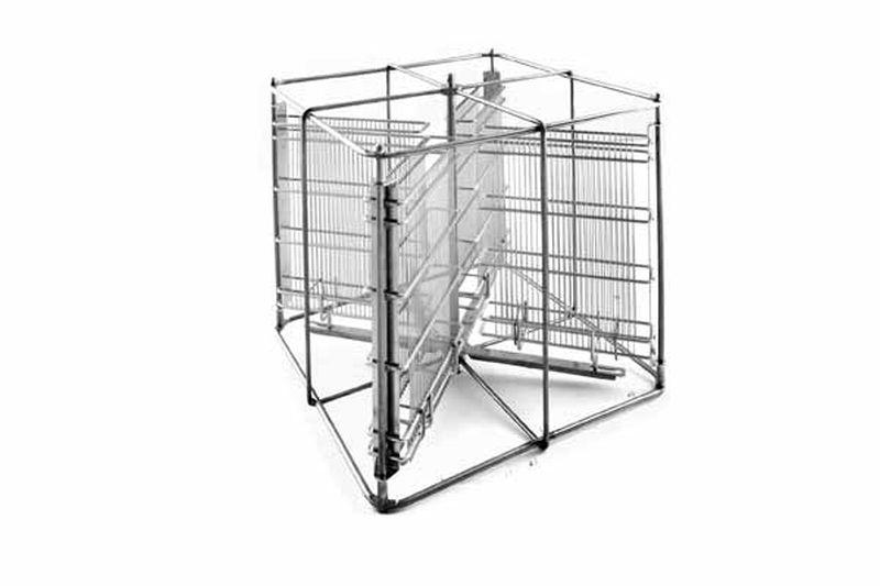 Los bolsillos para los marcos se fabrican con varillas verticales de densidad adecuada para que los marcos no se dañen durante el centrifugado. Están conectados entre sí mediante un mecanismo especial. Los bolsillos evitan que la miel se acumule en los compartimentos durante la centrifugación, por lo que los marcos quedan secos al terminar el proceso.