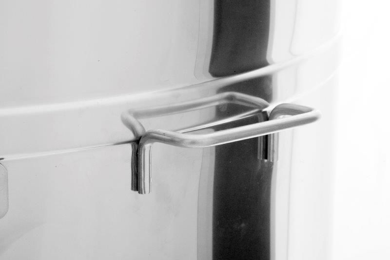 - Fondo del depósito: soldado sin costuras e inclinado hacia el grifo; grifo de miel Ø 38 mm, soldado en el punto más bajo